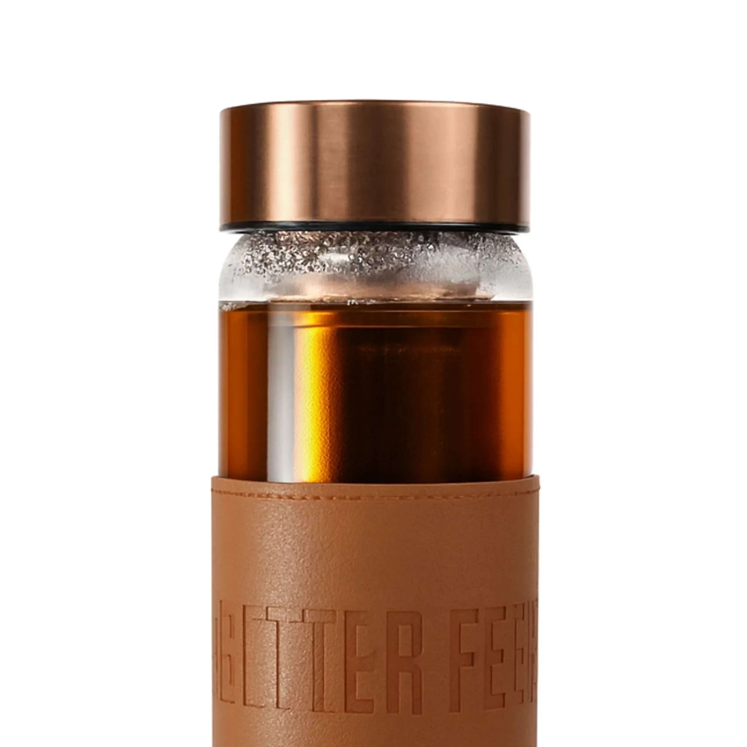 “I love how this bottle goes with everything. The brown leather grip is gorgeous, and it’s so easy to prep my tea anywhere.”